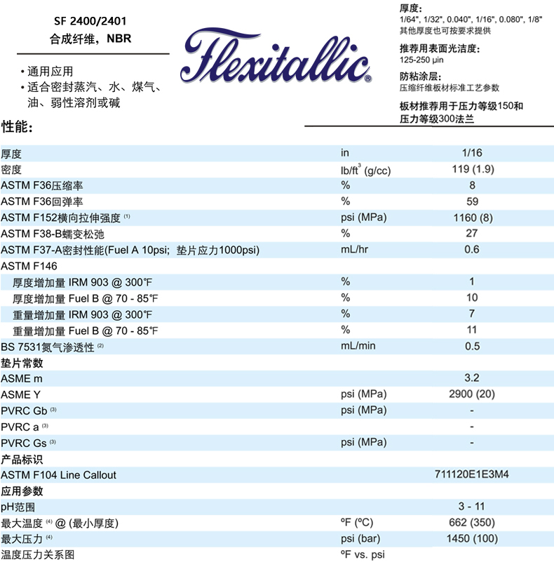 SF2400/2401— 一种以芳族聚酰胺纤维加强并且以丁腈橡胶粘合的通用板材。