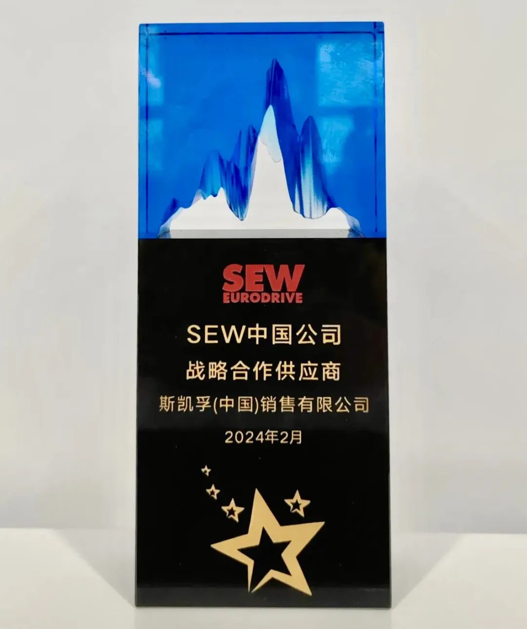 2024年2月27日,德国SEW集团在天津举办了SEW中国核心供应商大会。作为SEW中国战略合作伙伴,斯凯孚荣获战略合作供应商大奖。